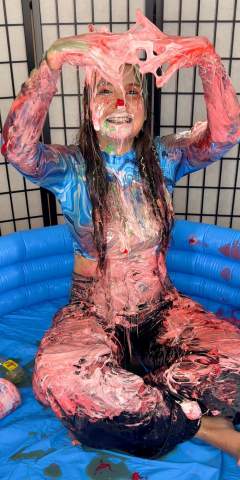 MessyMegan had her clothes completely covered in goop by LeRex